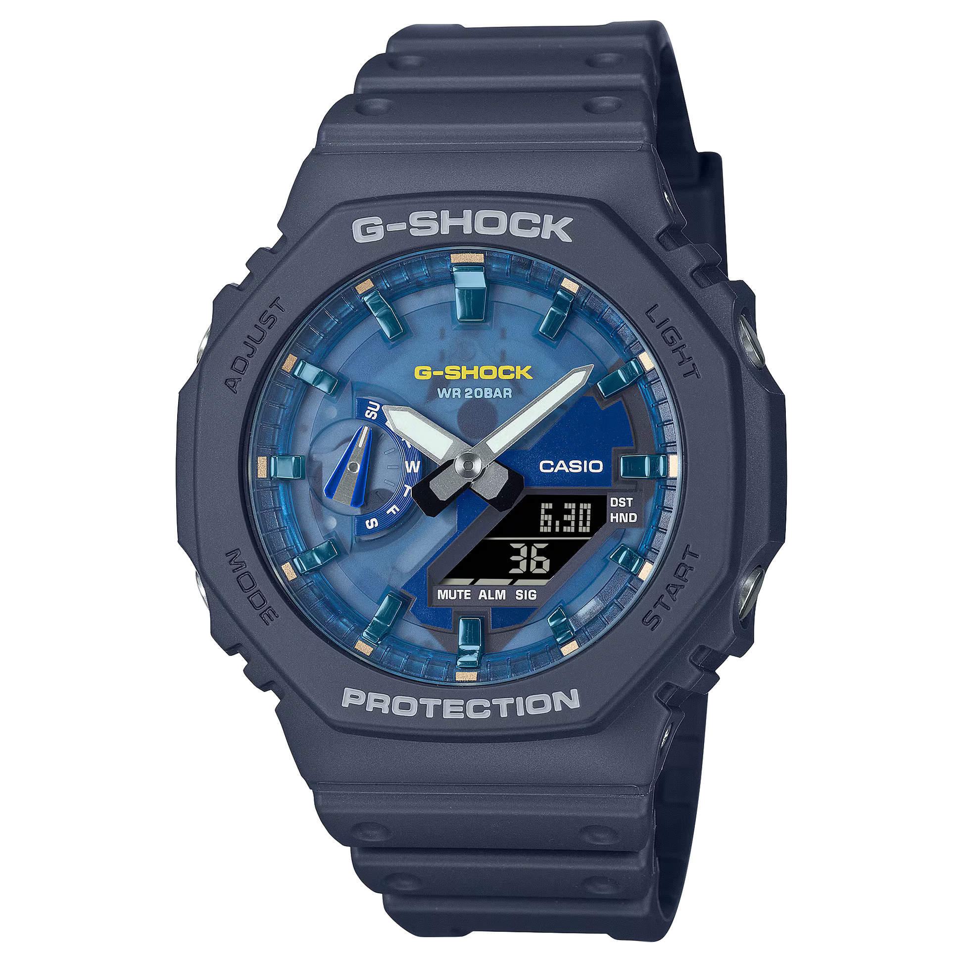 ساعة كاسيو جي-شوك GA-2100 زرقاء هيكلية تناظرية-رقمية – GA-2100AS-2A