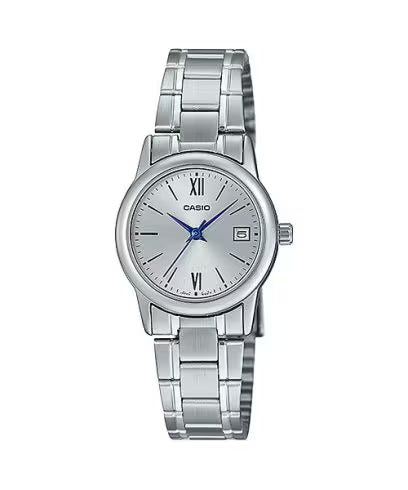 ساعة كاسيو LTP-V002D-7B3 هي ساعة نسائية أنيقة ذات تصميم تناظري، تتميز بميناء أبيض نقي مع مؤشرات ساعات بأرقام رومانية ذهبية اللون، بالإضافة إلى سوار من الفولاذ المقاوم للصدأ لإطلالة كلاسيكية راقية. تتميز الساعة بتصميمها النحيف وخفة وزنها، مما يجعلها مريحة للارتداء اليومي، كما أنها توفر دقة كوارتز موثوقة ومقاومة للماء، مما يجعلها خيارًا مثاليًا للعمل، والارتداء اليومي، والمناسبات الرسمية.