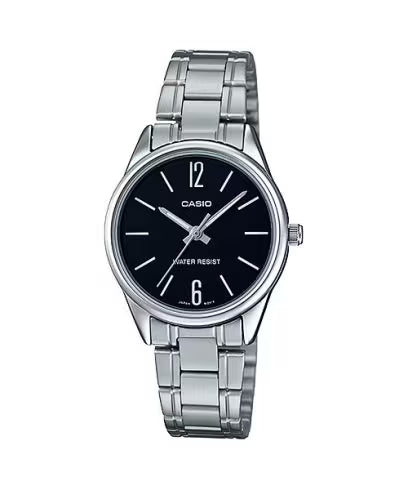 ساعة كاسيو LTP-V005D ذات مينا أسود من الفولاذ المقاوم للصدأ – LTP-V005D-1B