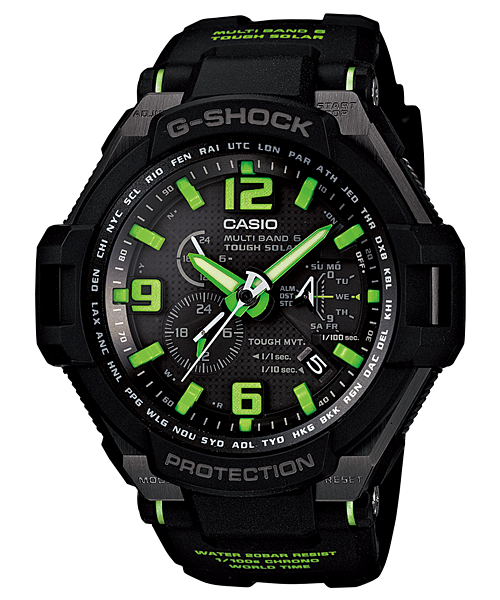 G-1400A-1A3 يتميز هذا الموديل من G-SHOCK بسوار من الراتينج الأسود مع علبة من الراتينج الأسود والفولاذ المقاوم للصدأ، ويُقترن بقرص أسود تناظري بالكامل مزين بتفاصيل خضراء بتصميم مستوحى من الطيران. صُممت هذه الساعة بهيكل مقاوم للصدمات، ومقاومة Triple G، وتقنية Tough Solar، وزجاج معدني، وميزة Neobrite، ومقاومة للماء حتى عمق 200 متر، وهي مصممة للاستخدام اليومي الموثوق به والاستخدام النشط. تشمل الوظائف المؤكدة التوقيت العالمي، وساعة إيقاف بدقة 1/100 ثانية، ومؤقت للعد التنازلي، ومنبه يومي، وتقويم تلقائي بالكامل، ومؤشر مستوى البطارية، ووظيفة توفير الطاقة، مما يجعلها خيارًا عمليًا للمستخدمين الذين يرغبون في ساعة G-SHOCK جريئة وتناظرية تعمل بالطاقة الشمسية مع فائدة يومية.