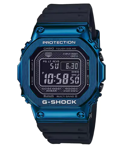 GMW-B5000G-2 يتميز طراز G-SHOCK FULL METAL هذا بسوار من الراتينج الأزرق وعلبة من الفولاذ المقاوم للصدأ وشاشة رقمية داكنة لإضفاء مظهر مربع كامل من المعدن. صُممت هذه الساعة بهيكل مقاوم للصدمات، وزجاج معدني، وظهر علبة قابل للغلق بالبرغي، وتقنية Tough Solar، وتقنية Bluetooth، وميزة Multi-Band 6، ومقاومة الماء حتى عمق 200 متر، وهي مصممة للاستخدام اليومي الموثوق والاستخدام النشط. تشمل الوظائف المؤكدة التوقيت العالمي، وساعة الإيقاف، ومؤقت العد التنازلي، وخمسة منبهات يومية، وميزة العثور على الهاتف، وإضاءة LED خلفية تلقائية كاملة، مما يجعلها خيارًا عمليًا للمستخدمين الذين يرغبون في الحصول على ساعة G-SHOCK فاخرة ومتصلة ذات وظائف أيقونية للاستخدام اليومي.